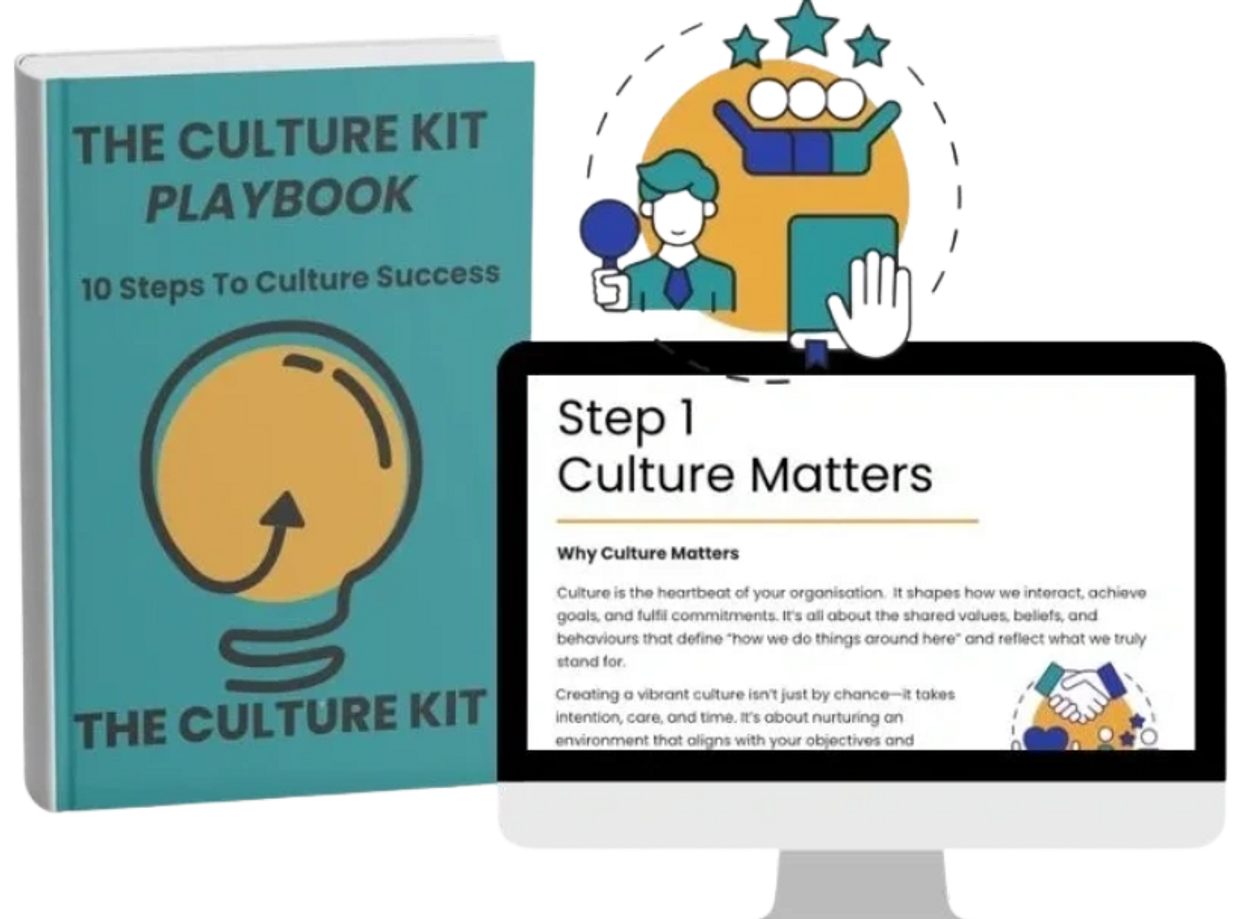 Alongside our three core culture steps, you will also receive The Culture Kit Playbook, a practical guide for developing and maintaining a people-focused culture, including bespoke frameworks, tools, and tips for support.